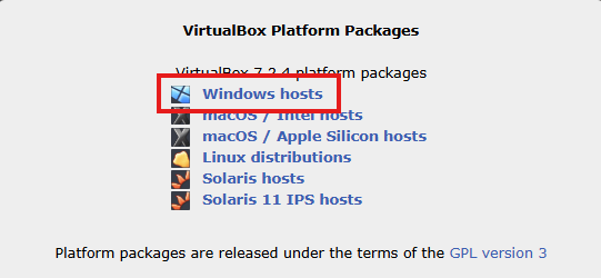 CFS-101은 모두에게 동일한 환경을 제공하기 위해 VirtualBox를 통한 VM을 사용한다. 먼저 Oracle VirtualBox 다운로드 페이지(클릭)에 접속한다.