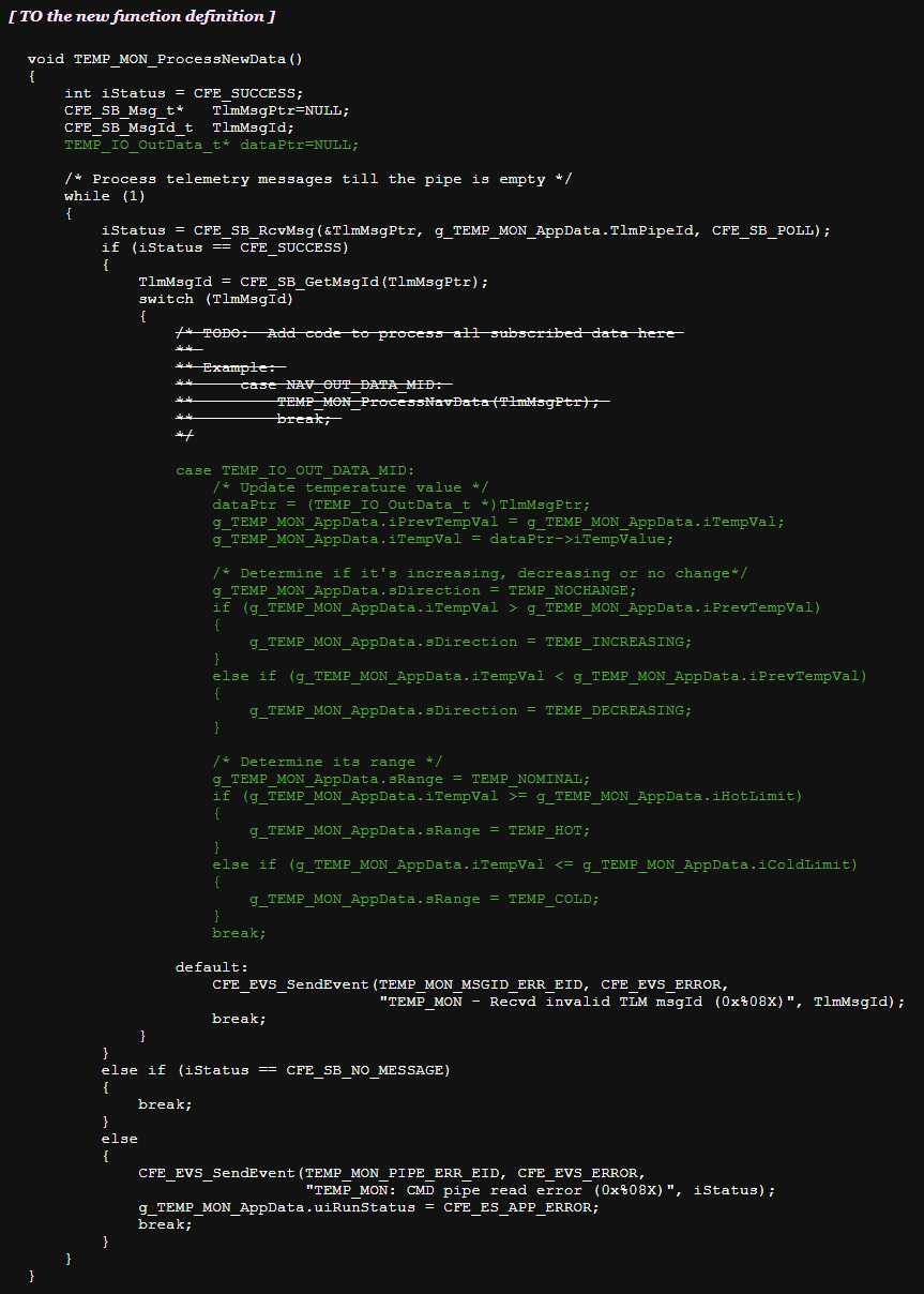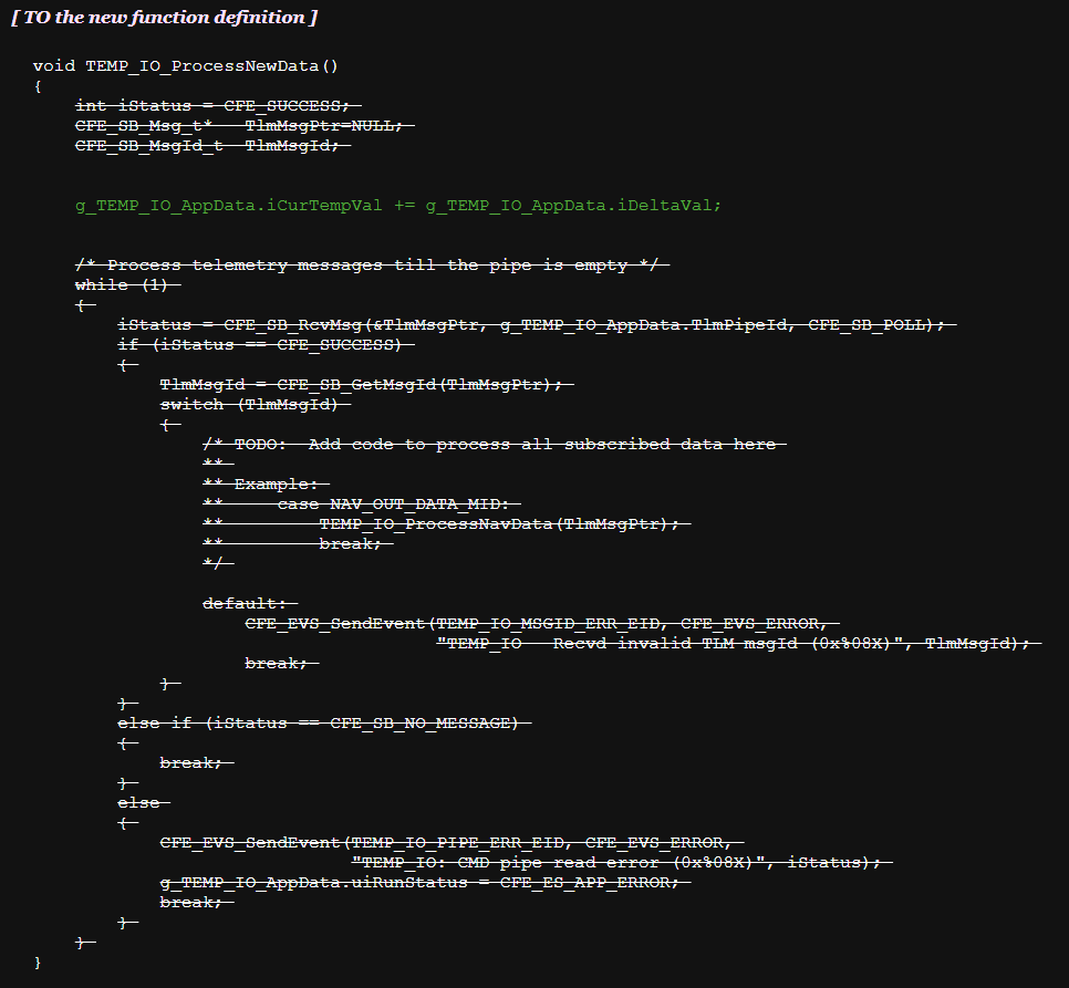 온도 관련 두 어플리케이션을 등록했지만 우리의 설계대로 완벽히 동작하는 상태는 아니다. 간단한 동작을 확인했으니 실제 cFS 내에서 맡은 역할을 수행할 수 있도록 기능을 보완해야 한다.