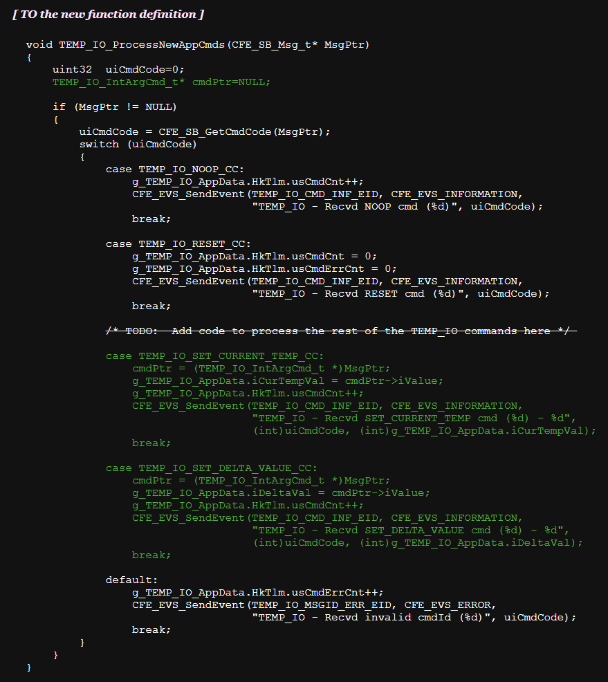 vi temp_io_app.hTEMP_IO_ProcessNewAppCmds() 함수에 각 명령에 대한 응답 처리를 추가한다.