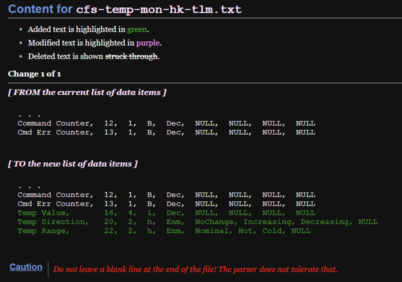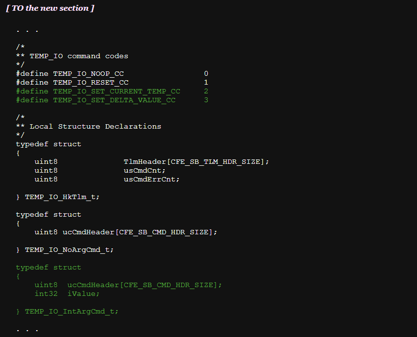 위성에서 지상국으로 수신된 데이터를 표현하기 위해 새 터미널을 켜고 cfs-temp-mon-hk-tlm.txt 파일에 필요한 정의를 추가한다.