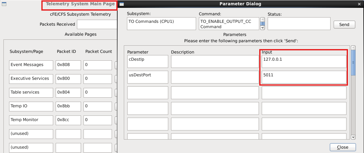 이전 GroundSystem 실습에서 했던 대로 Telemetry System Main Page를 켠 뒤 Command System에서 Telemetry Output을 활성화한다.