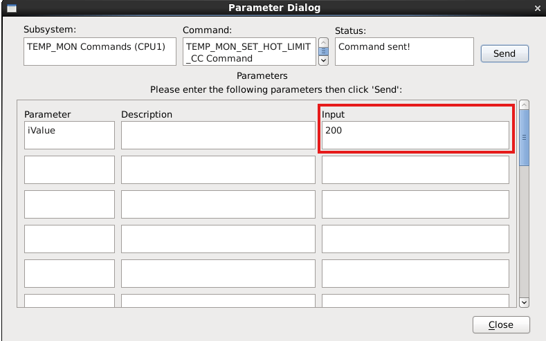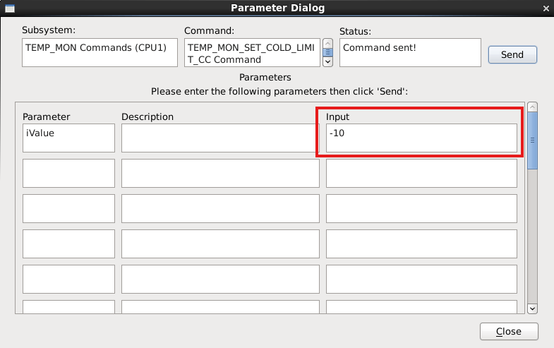 이번에는 TEMP_IO_SET_DELTA_VALUE_CC 명령어를 통해 델타값을 변경해 보자. 파라미터를 10으로 입력하고 명령을 전송한다.