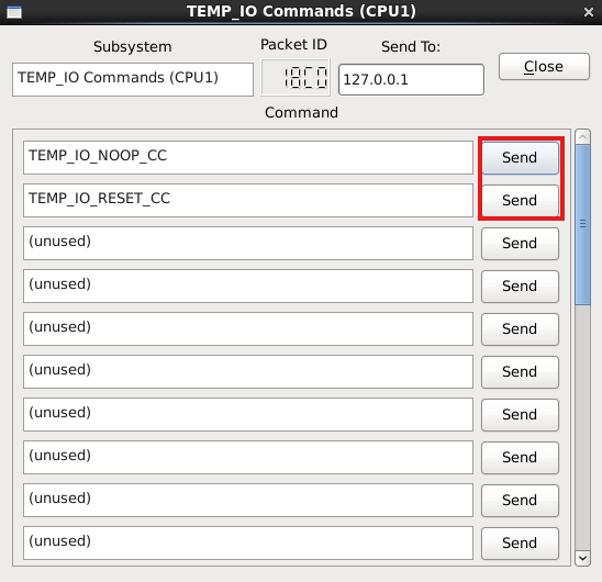 TEMP_IO Commands 페이지에서 TEMP_IO_NOOP_CC 명령과 TEMP_IO_RESET_CC 명령을 전송한다.