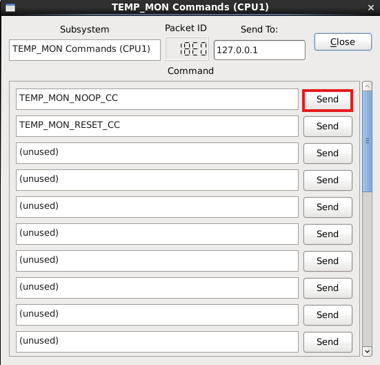TEMP_MON Commands 페이지에서 TEMP_MON_NOOP_CC 명령과 TEMP_MON_RESET_CC 명령을 전송한다.