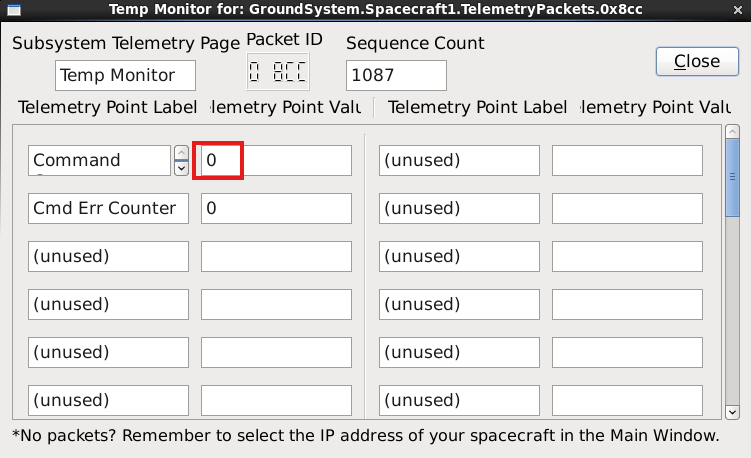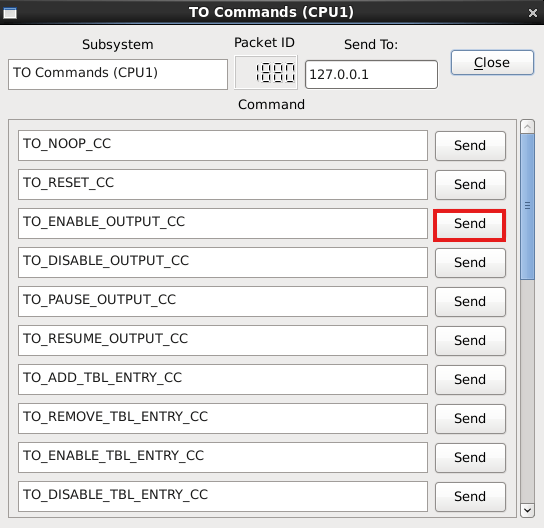 python GroundSystem.py이전 포스트에서 했던 것과 동일한 방법으로 Telemetry를 활성화한다. 먼저 Telemetry System Main Page를 켜고, 이후 다시 Command System Main Page에서 TO_ENABLE_OUTPUT_CC 커맨드를 보낸다.