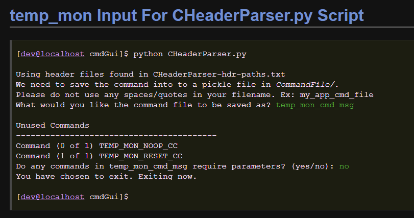 마찬가지로 TEMP_MON을 위한 GroundSystem 커맨드를 생성하기 위해 동일하게 진행한다. 동일한 디렉토리에서 CHeaderParser-hdr-paths.txt 파일을 한 번 더 수정한다.