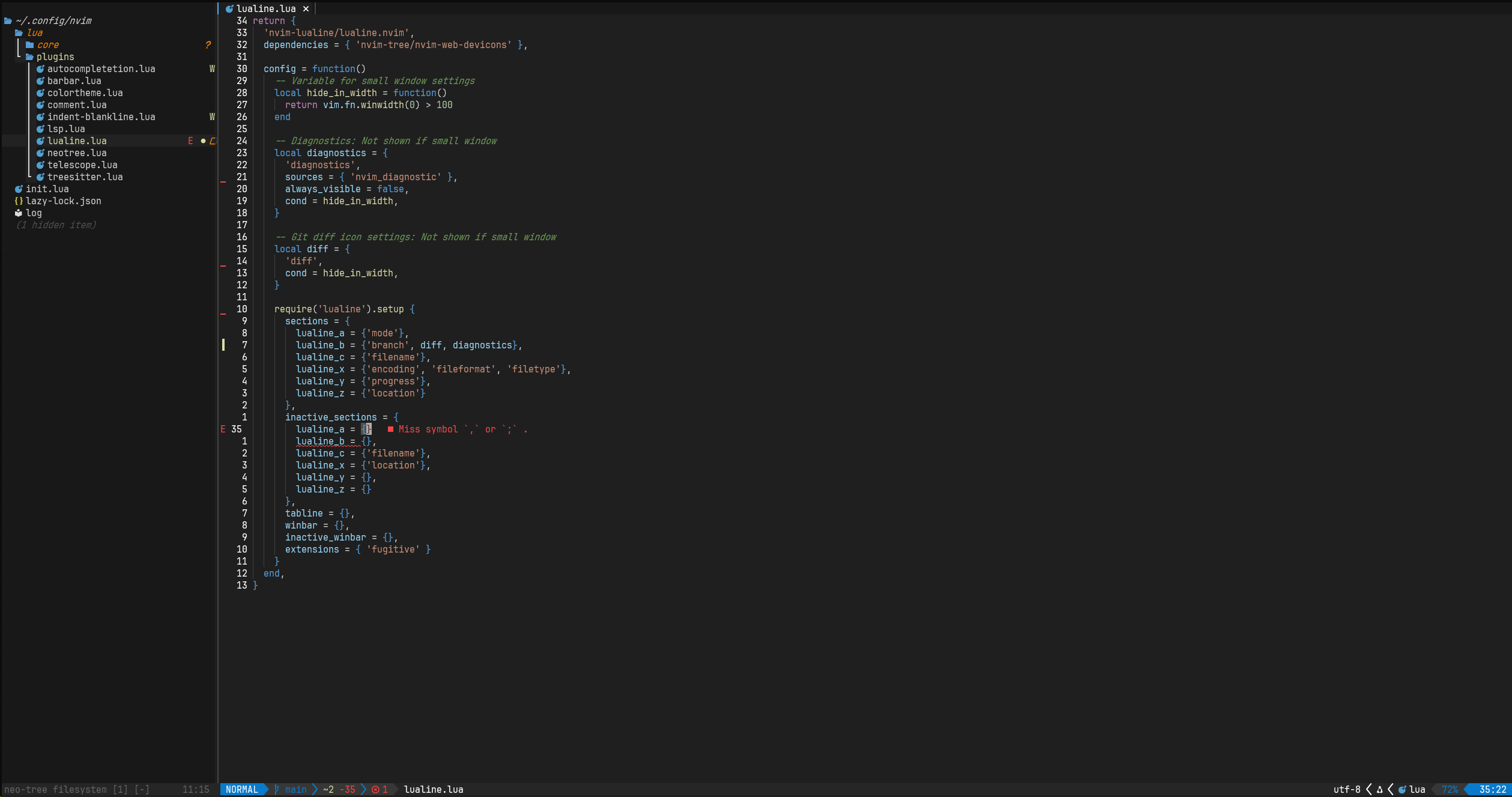 ๋ง ํธํ์ด ๊ฐ์ฅ ์ ๋์ด ์๋ ํ๋ฌ๊ทธ์ธ์ด lualine์ด๋ค.